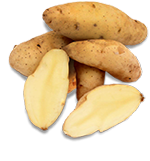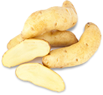 This is the most popular of all of the fingerling potato varieties. This variety has a skin that is tan colored, waxy, and smooth. This loved potato has a fluffy yellow tinted flesh with a nutty and buttery flavor.