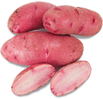 More round than many fingerlings, this variety's smooth and shiny pink to red skin and has a dry, fluffier yellow flesh with streaks of reddish pink. It offers a creamy texture and slightly nutty flavor.