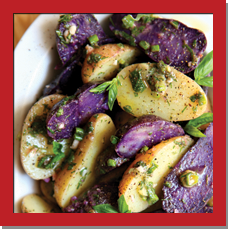 Most people picture potato salad as a mayonnaise-based dressing over potatoes and other vegetables. This recipe takes potato salad and gives it a whole new twist - bright, fresh, and light. Plus, the dressing does great double-duty over any steamed or boiled vegetable, like asparagus, peas, or carrots. Use mixed fingerlings for a multicolor dish that looks as amazing as it tastes.