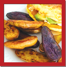 Who says breakfast can look great? Using mixed fingerlings sliced lengthwise lends a high-end look and sets off a perfect breakfast for weekend company. Enjoy the full taste of roasted potatoes (and the visual flair as well) in less time.